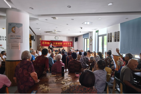 近日,星桥街道居家养老服务中心桐鹤名苑分中心首期“茶韵暮年 乐聚桐鹤”讲坛在茶香袅袅中温馨启幕。活动特邀退休教师钟老师担纲主讲,60余位老年朋友齐聚一堂,在茶香氤氲中开启了一场回溯岁月、洞察时代的对话。